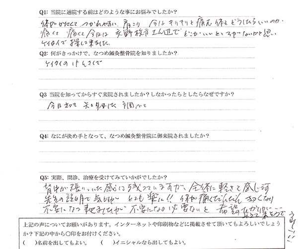 声用紙 肩こり 枚方市 T様